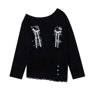 Creative Cartoon Graffiti Color Block Long Sleeve