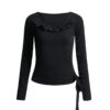 Polka Dot Rhinestone Trim Long Sleeve